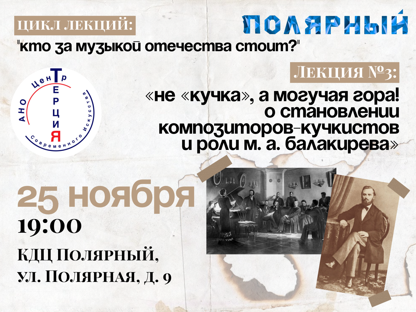 Мы продолжаем погружаться в творчество композиторов, изменивших историю нашей отечественной музыки. Нас ждёт лекция "Не «кучка», а могучая гора! О становлении композиторов-кучкистов и роли М. А. Балакирева". Узнаем, как формировалась содружество Новой русской музыкальной школы и начнём знакомиться с их творчеством, поговорив о Милии Алексеевиче Балакиреве!